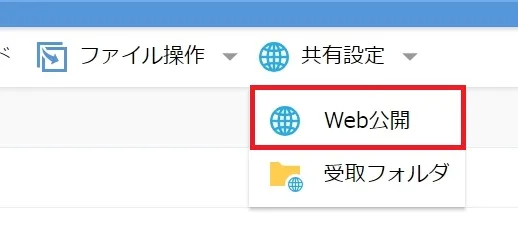 - 一覧の上部に表示されている「共有設定」を選択して「Web公開」を押してください.画面サイズによってはアイコンのみが表示されます.