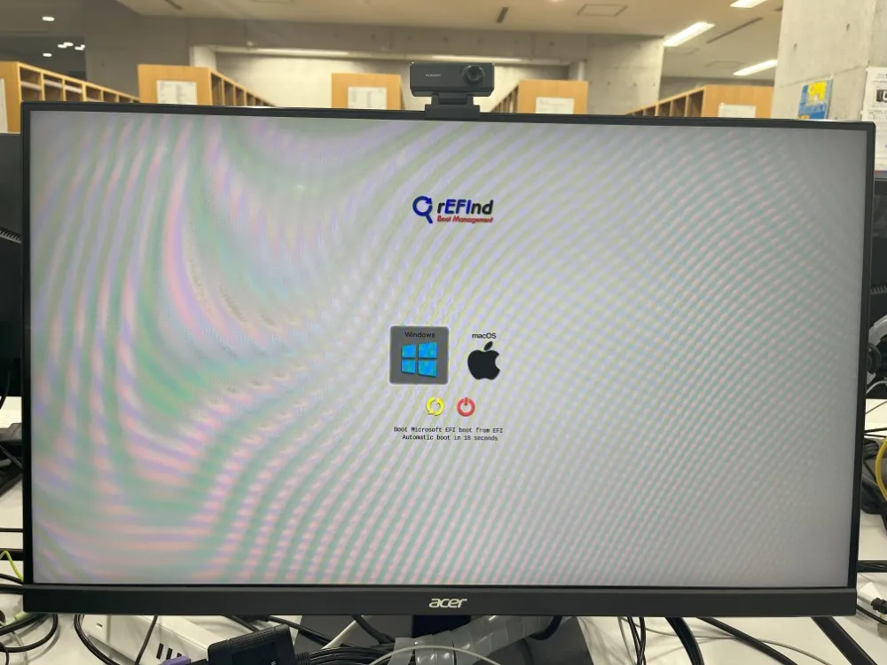 2. OSの選択画面が表示されたら,キーボードの矢印キーを用いてWindows環境を選択し,Enterキーを押してください.