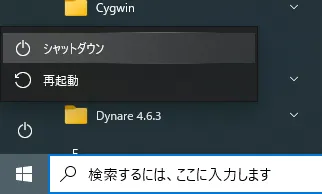 3. 画面左下のWindowsマークをクリックし,「再起動」もしくは「シャットダウン」をクリックしてください.