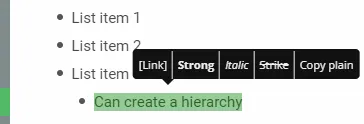 For example, if you select a string of text and choose “strong” from the window that comes up, you can make the text bold.