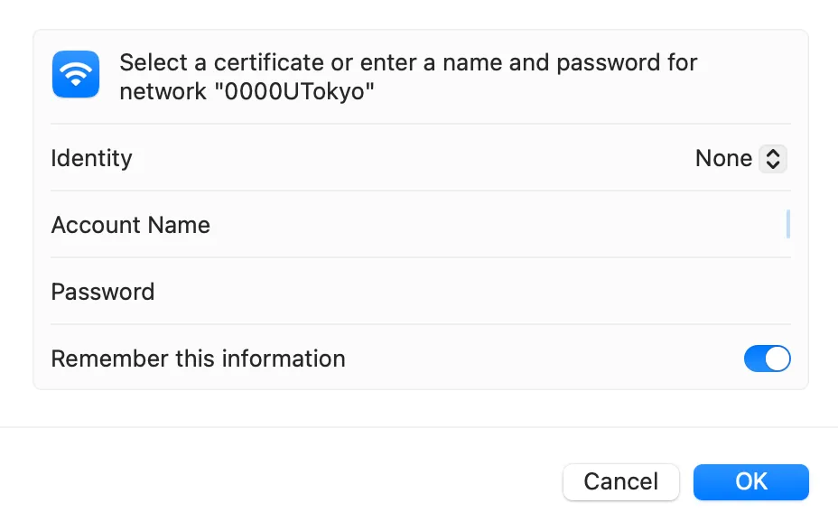 | Password | Enter the password for the UTokyo Wi-Fi |