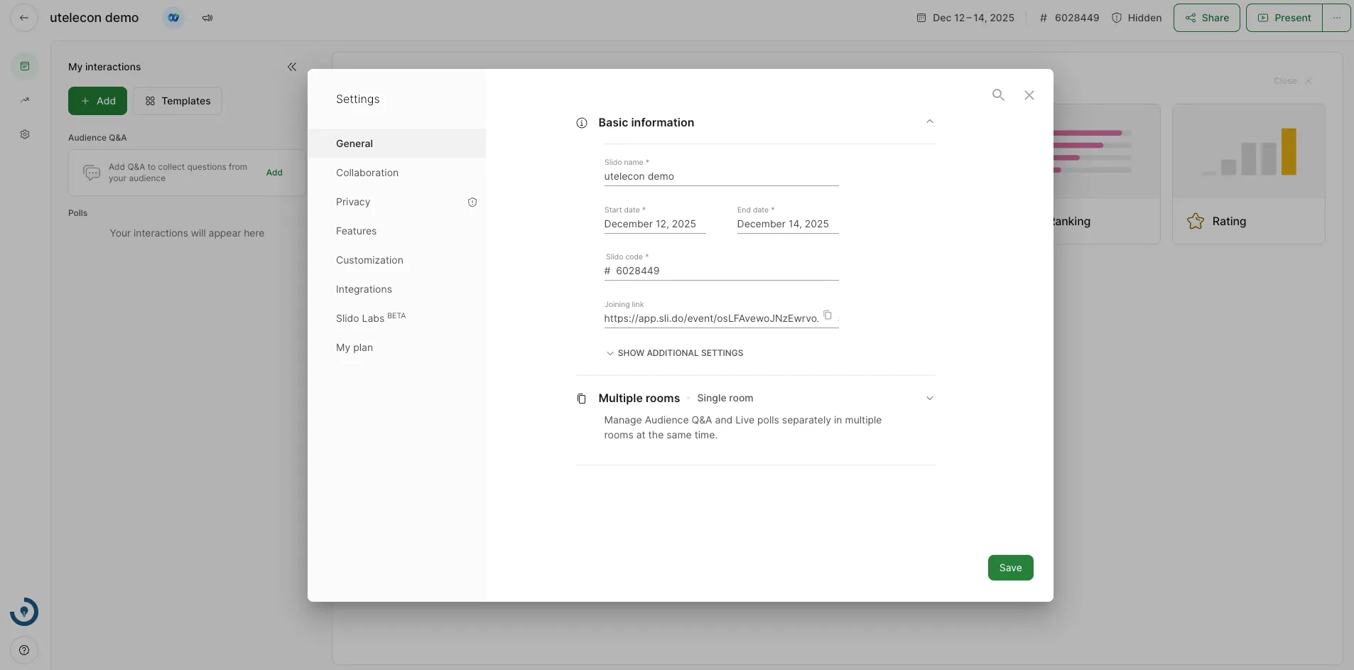 Slidoでイベントの設定を変更する
